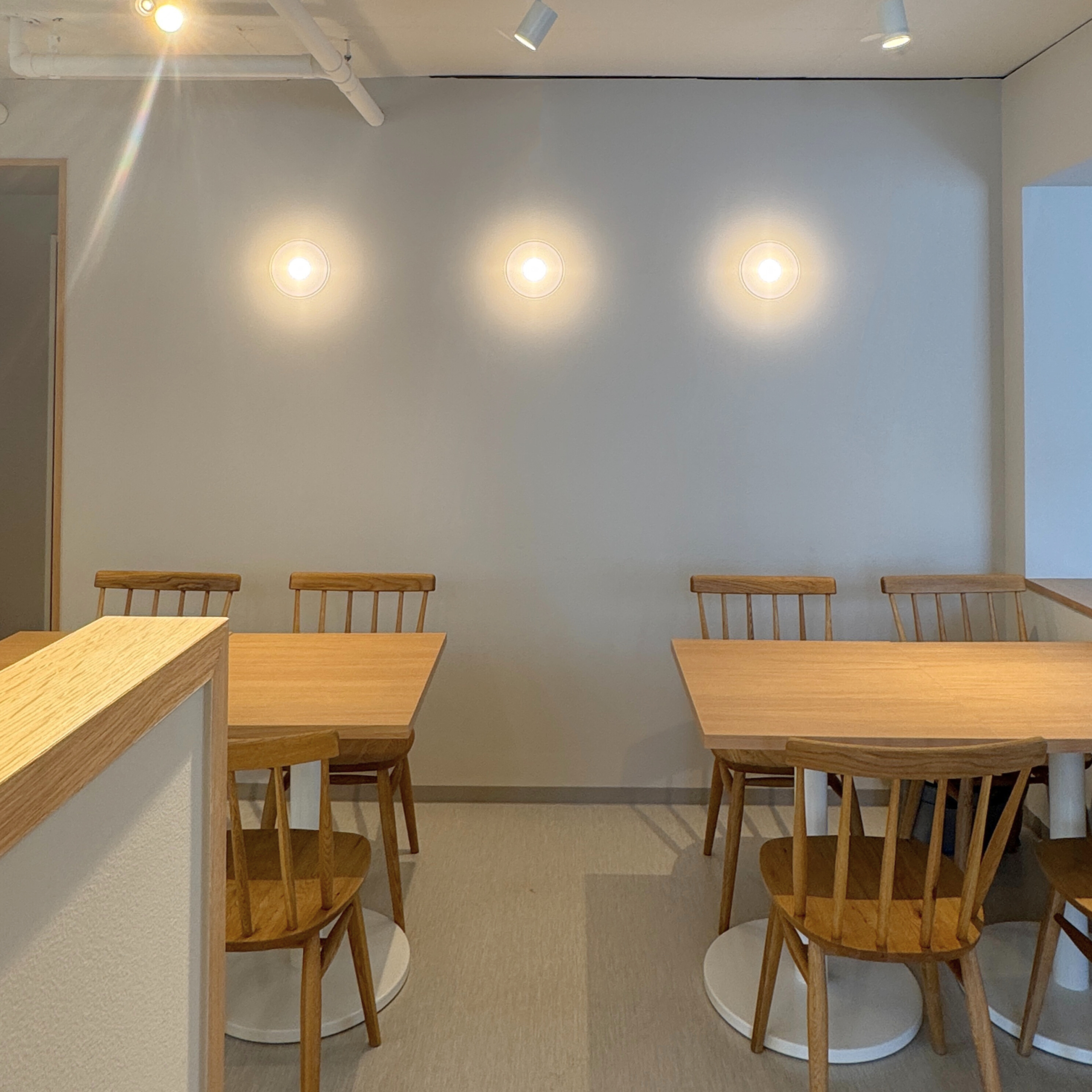 このシンプルで温かな空間が、野中さんの想いをしっかりと表現できる場になればと願いながら、お一人でも、ご家族連れでも、友人同士でも、それぞれが心地よく過ごせる空間づくりを目指しました。
