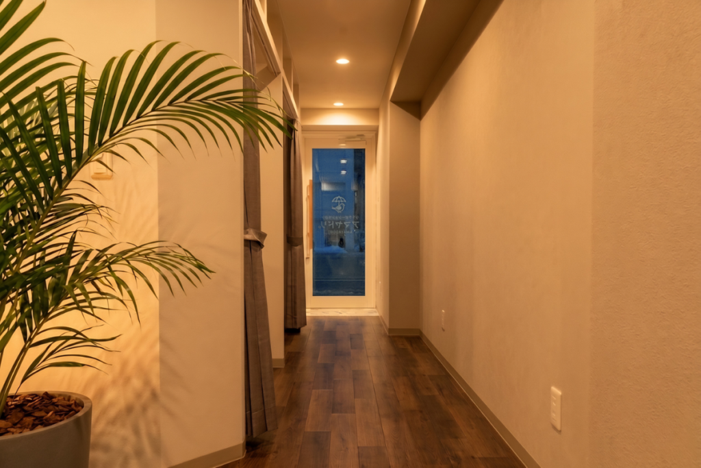 女性の方も気兼ねなく利用できる店舗にされたいとのオーナー様のお気持ちもあり、待合室や隣の施術室から中が見えてしまうのは問題と感じました。